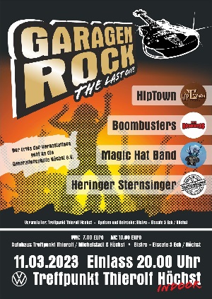 ![]() Das Jahr startet gut!!! Am 11.03.2023 geht es direkt los mit dem Garagenrock in Höchst! Mit dabei sind: Hiptown Heringer Sternsinger Boombusters Wir machen für die Jungs und Mädels den Opener. Also drängelt Euch rechtzeitig durch den Eingang! Wir freuen uns auf Euch!!! |